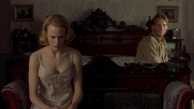 Since the fog surrounding their house is so thick, instead of making it to her desired destination, Grace just bumps into him out of nowhere. He’s supposed to be on active duty in World War II, but she finds him here for some reason. Odd. They go back home together and have a cute little reunion with Anne and Nicholas, but Charles doesn’t seem very happy. Despite being back home with his family that he loves, he has this air of depression around him that doesn’t let up, even when he’s alone with his wife. Like most other things in this movie it’ll make more sense after the big reveal, but for now it’s just weird. Not one day after Charles’ return as well, he tells Grace that he can’t stay and he only came back to say goodbye since he now has to return to his duty. Grace naturally doesn’t take this well, but they share a night of passion and Charles slips out undetected.