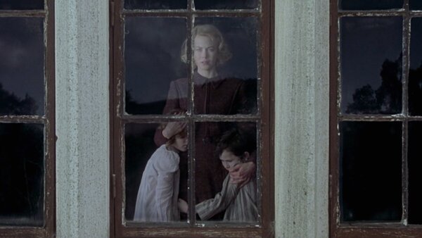 What also helps sell this whole film is how it’s kept focused on this one house. Nothing happens outside of the house in the film, and of course that ties into the twist later, but it also helps the movie stay focused and get us as the audience even more invested with the characters and their situation. This also makes me think how if the twist didn’t happen in this movie, if it were just a self-contained story about a woman and her family doing their best to survive on their own without their father, I think it would’ve worked fine enough. Granted I don’t think as many people would’ve talked about it after seeing it or it would’ve even been as well received as it was by audiences, but the story and characters could’ve supported it enough on its own to create a different enough fictional period piece. I know I’m mentioning the twist a lot without actually mentioning it, but that is the main thing in this movie people remember and for good reason. Especially considering that this movie clearly takes after The Sixth Sense quite a bit where the twist is the main crux of the movie and the primary reason to watch it in the first place, you can see why most people discuss it. Don’t worry though, we’ll get there in due time.