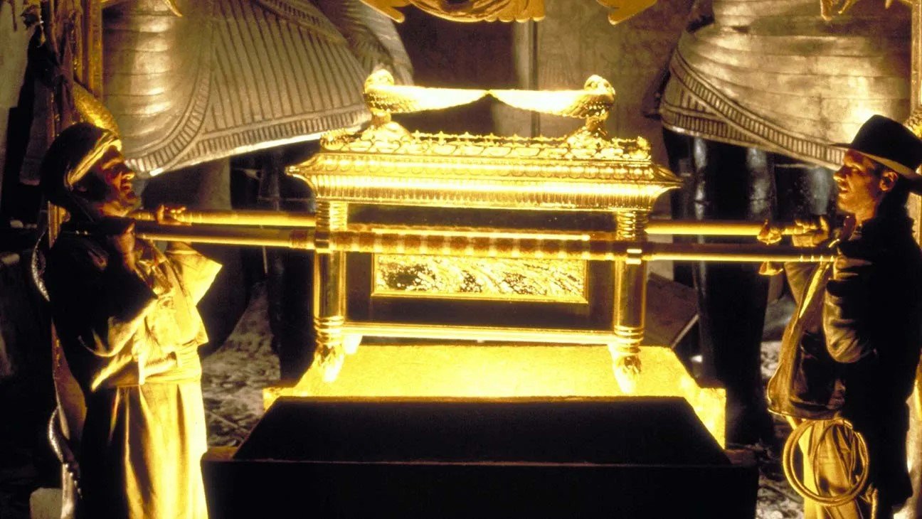 Meanwhile, back in the part of the story you actually care about, the Ark is finally retrieved after Sallah joins Indy down in the Well and they both lift it into a crate. Before I continue, I want to mention that at this point we’re an hour and 10 minutes into the movie and this is the first glimpse we catch of the Ark which is really beautiful on its own. It’s clearly made out of solid gold (at least in movie terms) and the details on it really make it mesmerizing.