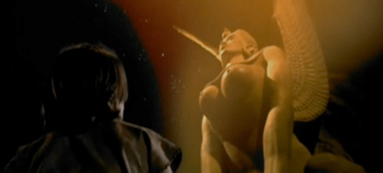Of course all this will make much more sense in the end, but we’ll get to that when we get to that. At first Bastian is freaked out by this, and I don’t blame him for that, but he keeps reading the story anyway because not only is he a kid but I imagine being a part of a fantastical story like this one is something he’s always dreamed of, and something that the movie has hinted at up until now. Atreyu passes through the mirror and makes it to the Southern Oracle which is just a color shifted version of the Sphinx Gate from before. They even reuse the exact same shots from the previous Sphinx Gate scene.