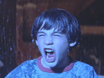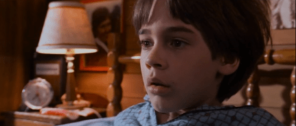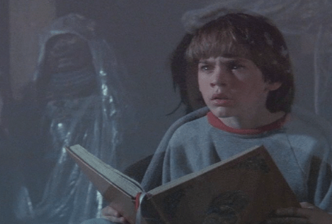 Watching this movie for the first time in a while, I forgot how surreal and etheric these opening titles are. Not only is it beautifully accompanied by this movie’s main theme: ‘The NeverEnding Story’ sung by Limahl, but the smoky, cloud covered backgrounds leave you with both a feeling of wonder and dread at the same time. They color shift from shot to shot and along with the strong wind sounds occasionally thrown in alongside the music, it really creates an illusion that you’re being transported to another world, flying, or dreaming. And wow did I say the word ‘dreaming’ at just the right time since after the credits are over we’re introduced to our protagonist Bastian (played by Barret Oliver) who’s just waking up from a dream he had about his dead mother. I might not be reviewing a Disney movie, but opening with a dead mother makes it feel like I am.