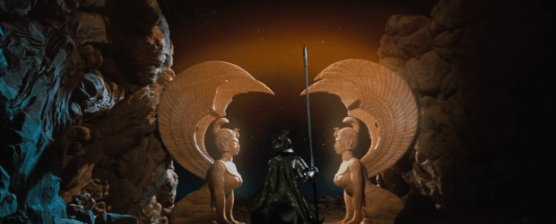 Urgl is the one who’s nursed Atreyu back to health, but Engywook just so happens to be an expert on the Southern Oracle. It’s also pretty lucky since Falkor has already taken Atreyu 9,891 miles towards the Southern Oracle already leaving only 109 miles left to go. What’s kinda weird about this is that Atreyu ends up walking the entire rest of the way to the Southern Oracle without the help of Falkor which is a bit unbelievable, but I assume this was another way that the filmmakers tried to keep the runtime focused. Even with this logical leap the movie is still pretty great. There is unfortunately a catch to the journey to the Southern Oracle, and that’s the fact that you have to pass through 2 gates which test your character beforehand as Engywook explains. The first is a gate featuring two sphinxes which judge your confidence in yourself. As demonstrated by another adventurer who attempts to pass through it, lack of confidence results in your death.