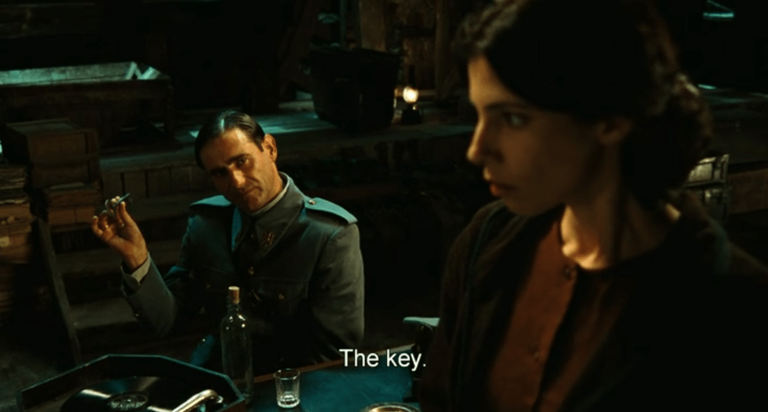 If you pay close attention, you’ll notice that this scene is later paralleled in the Pale Man sequence that Ofelia has later with a long dining table full of food, a faceless monster at the head, and a square shaped fireplace behind it. This is in part to show similarities between the fantasy world and the real one and give a sense of validation to the fantasy world making it seem even more real. At the table, Vidal reveals more of his assholetry by talking about how he wants to be here hunting down rebels because he feels as if it’s his right to do so while also insulting Carmen for telling the story of how they met, and denying the existence of his father’s watch establishing a deeper connection to it. What I like about this is how we constantly see Vidal checking his watch throughout the movie making it clear how much he cares about it and how much it means to him. Eventually Ofelia makes it home with the help of Mercedes, since she was fresh off sending signals to the rebels, and Carmen is not happy about what she did to her dress.