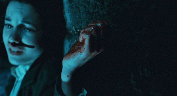 Not long after, she gets lead by the fairy to deliver the key to the Faun only for him to tell her that she’s going to need it herself for the upcoming task. Well wasn’t that helpful?! The next morning, the soldiers start handing out supplies to the families that were present at the dinner party the previous night while Ofelia takes another look in her book (Reading Rainbow!). It starts to have its time of the month though which also doubles as Faun head imagery only to reveal that in the other room Carmen had an…accident.