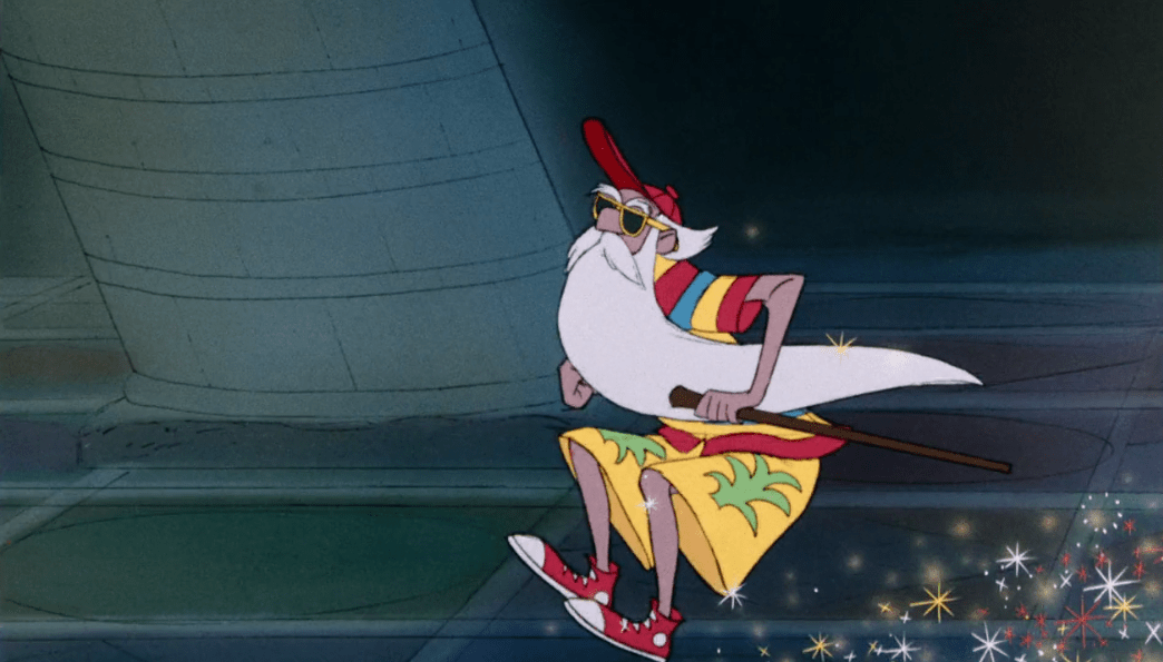 Think about it, if you had never seen a wizard before and someone showed you this guy, you’d be like “Yeah, that’s a wizard.” Elderly man, long white beard, pointy hat, long pajama-like robes, small glasses, occasionally seen with a pipe, and a wand to use magic with. Not only is he the textbook definition of a wizard, he’s also a really fun character and my personal favorite in the movie (with Archimedes close behind). Especially when it comes to movies that don’t have much of a plot, it’s the characters that keep you invested, and this movie has some pretty good ones that probably have more development than they need to have.