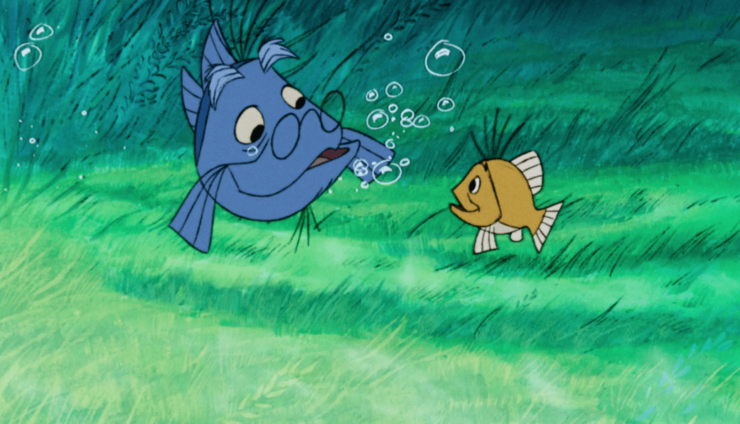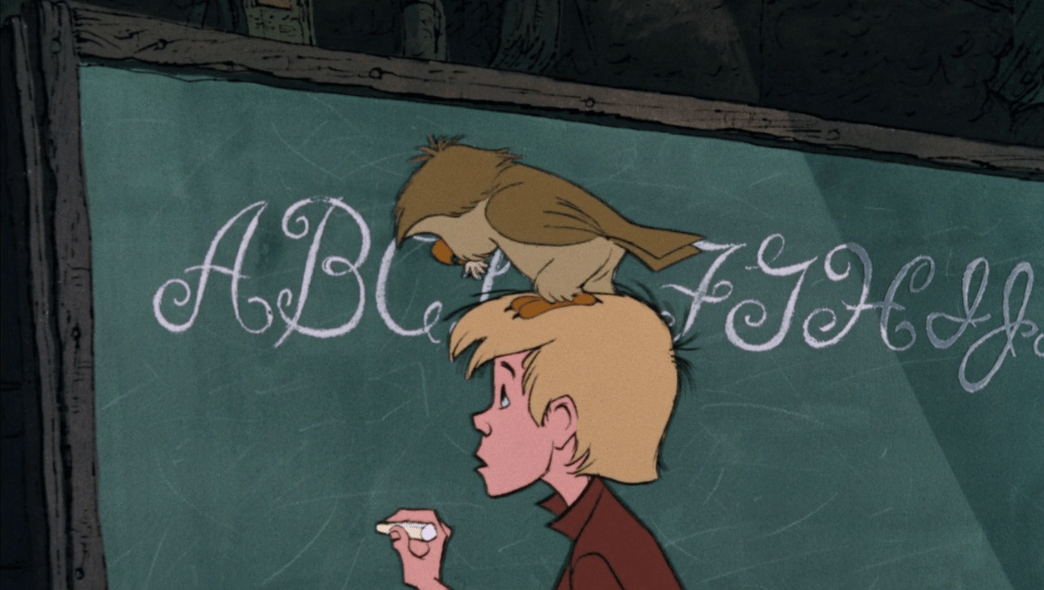 We begin the film like most other animated films began at the time with an overture including each of the songs we’re about to hear in the movie against bright backgrounds and stylistic credits. It’s here that I also learned that this movie was actually based on a novel that was released in 1938 by the author T. H. White of the same title. Unfortunately I don’t have the book in my possession so I won’t be able to make any comparisons between the two pieces, but I will still point out that the songwriters are the Sherman Brothers, the same two brothers who did the songs in Mary Poppins which I think is really cool!