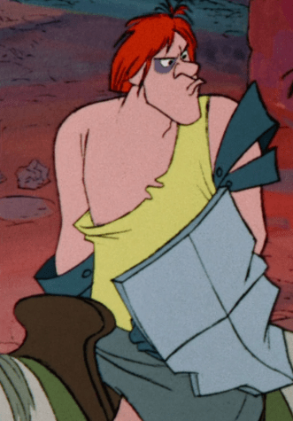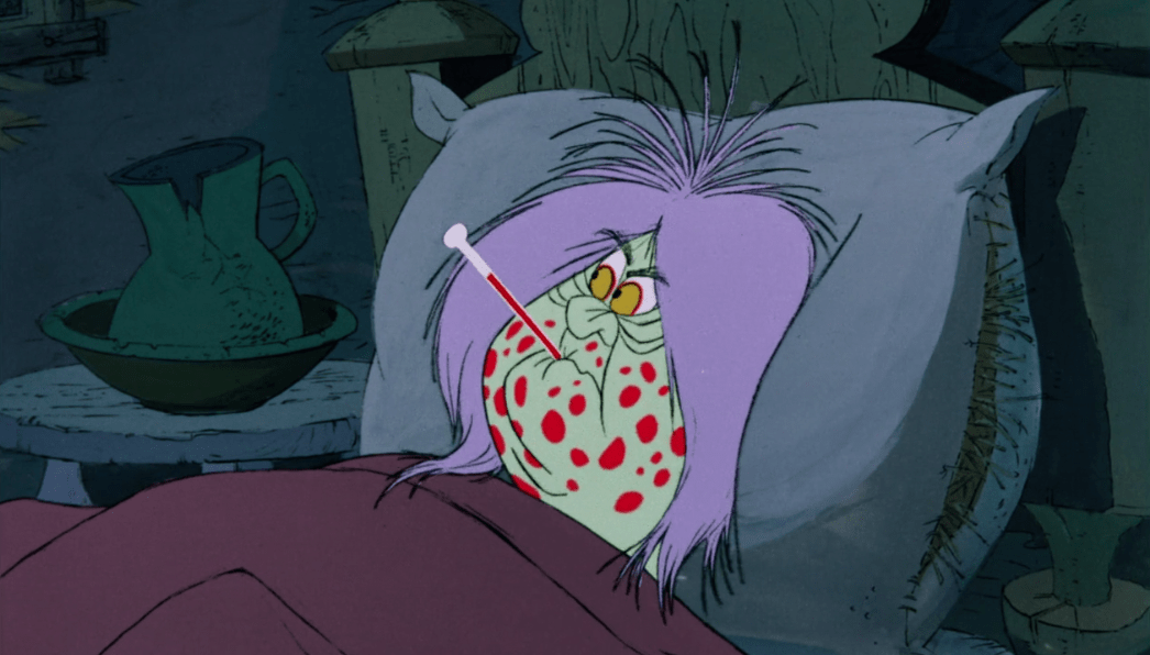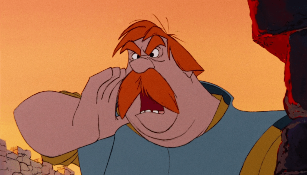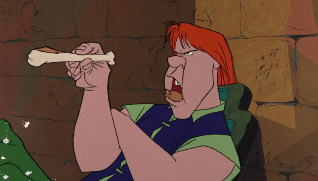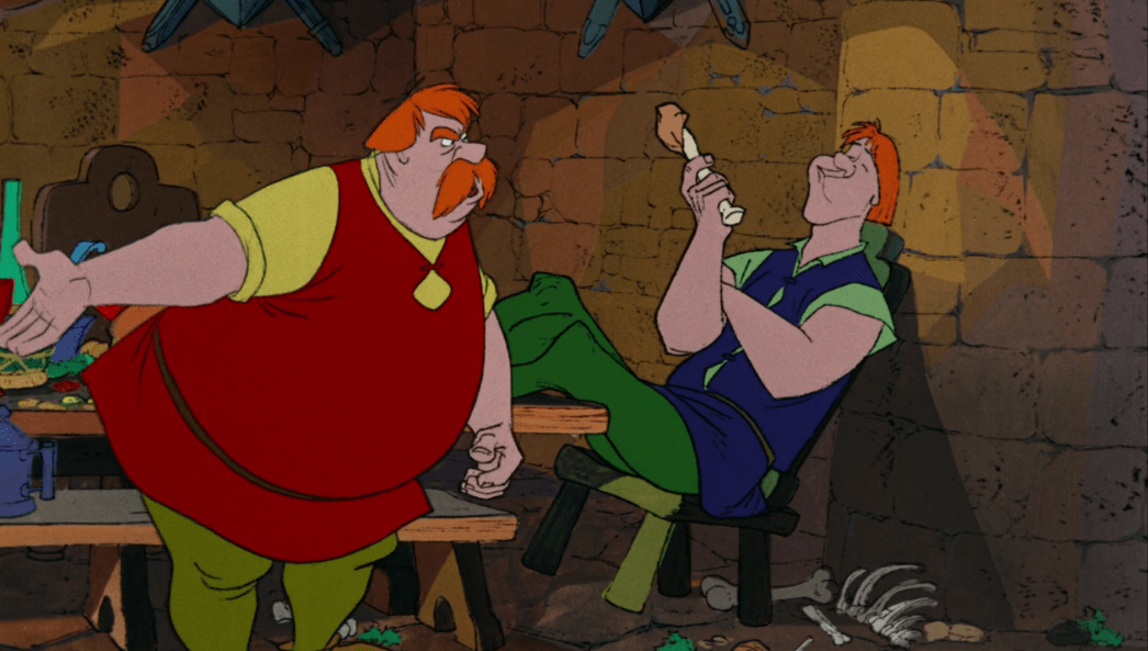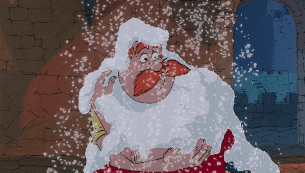 I mean it’s just so much fun! Both Mim and Merlin take turns changing into various animals (another fun detail, Mim always transforms into the animal that eats whatever animal Merlin is) which showcases some really fluid and creative animation. I really can’t do this sequence justice with images, you’ll have to watch the movie. Not only is it fun, it’s also funny with how Mim’s first move is just to cheat and they engage in plenty more creative slapstick. It’s also interesting to see all the clever choices Merlin has to make in order to counteract Mim’s spontaneity and ruthlessness which eventually culminates in Mim cheating again by turning into a dragon, but Merlin seals the deal with a very clever loophole. In the beginning, Mim said only animal transformations were allowed, and Merlin ends up turning himself into a germ. Since germs are technically animals he manages to get Mim to catch him which results in him winning.