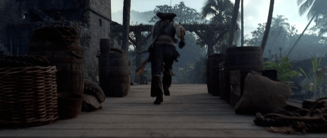 Much like what I said in the intro, Jack Sparrow is definitely what drew most people to this film and the rest of the characters (outside of the other pirates later) are pretty boring. I suppose Will and Elizabeth are…fine. They’re nothing entirely special though. What makes it more difficult to enjoy them is how they’re also main characters so they get a lot of focus alongside Jack Sparrow later and they really can’t support the film on their own. We’ll get a bit more into that real soon, but for now we end this flashback with Elizabeth stealing Will’s medallion and Elizabeth catching a glimpse of the Black Pearl in the distance before we flash forward to present day. Well, present day in the movie.