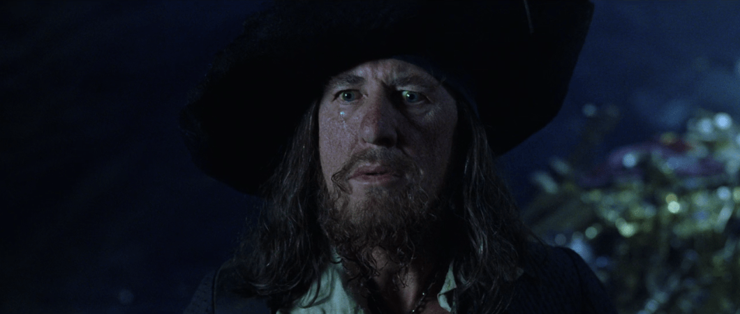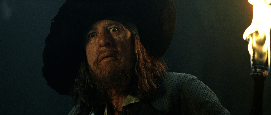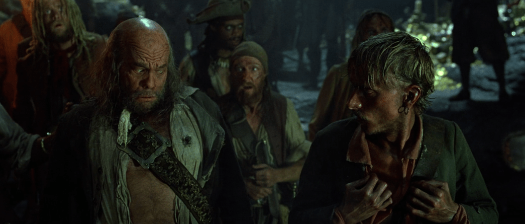 So, what now? Argue of course! Well, these are definitely pirates. While they’re distracted Will sneaks in after knocking Jack out with an oar to rescue Elizabeth and take the medallion back in the process. It takes a bit more arguing until Barbossa and his crew realize Elizabeth’s gone and he sends everyone after her. That’s when they come across a familiar face.