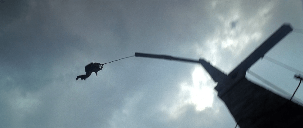 Naturally through some wacky antics they manage to free Jack, but the Navy is hot on their trail! Not to worry, Jack and Will have…a rope! Huh, you really think that’s gonna work?