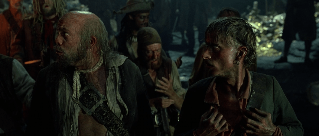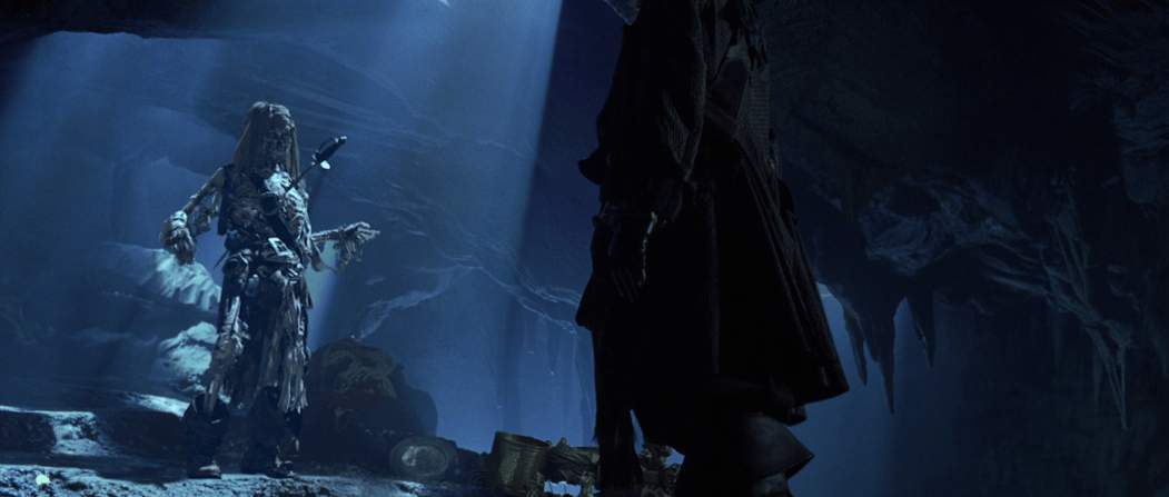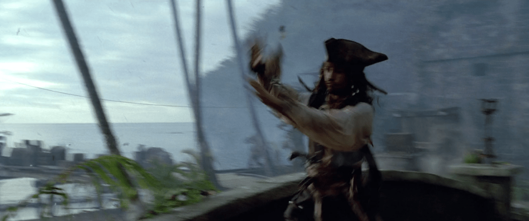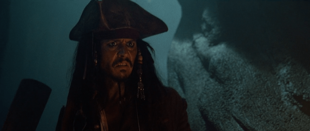 It’s also kinda cool how Jack’s “That’s interesting” line comes back around later in the film in a similar fashion, but for now it’s a nice preview of what the rest of the movie is going to be like. That and seeing the curse in action gives Jack an idea in this scene about how to get the Pearl back which will also come back into play of course. One thing that gets me about this is how these same two pirates don’t let the rest of the crew know that Jack is still alive when he isn’t supposed to be. When the crew runs into Jack again later they act as if it’s still a big surprise he’s alive, so why didn’t these two pirates tell the crew about Jack? A little weird, but not movie-breaking necessarily.