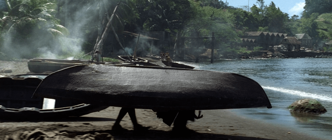 One thing I’d also like to mention is how on the commentary track with director Gore Verbinski, he says that he considers this part with Jack and Elizabeth on the island to be the weakest part of the script since while they’re here on this island nothing of value is learned by either of the two characters. I guess I can see what he means, but I don’t think this is the right movie to do that sort of thing or the right characters to ‘learn a lesson’ as it were. Ultimately this scene is what leads to the two of them getting found by the Royal Navy which keeps the story moving forward at the very least and once again shows off how clever Elizabeth can be by burning all of the rum to create a giant signal fire while Jack is passed out drunk. It also leads to this classic moment.