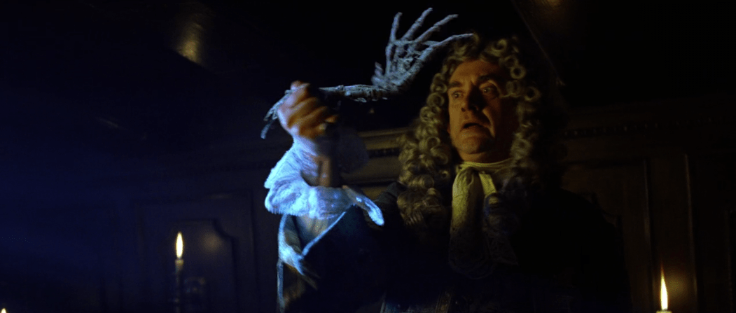 Before the pirates make it to the Dauntless, Elizabeth ends up escaping to free the rest of the captured crew on the Black Pearl leaving her father completely dumbfounded. The pirates then start their attack, yet the best part of this attack is strangely Governor Swann fighting with this disembodied hand.