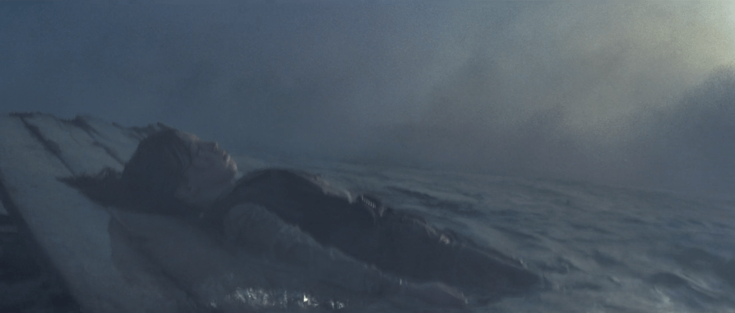 The girl’s father Weatherby Swann also happens to be a governor (played by Jonathan Pryce) and doesn’t want his daughter getting interested in pirate stuff. It’s gonna be a long franchise for him. Granted it is for the rest of us too, but that’s beside the point. Aside from that, the one thing that especially weirds me out about this flashback is how we see Lieutenant Norrington (played by Jack Davenport) as markedly older than Elizabeth and just knowing how he’ll eventually want to marry her when she comes of age. Sure it’s when she comes of age, but it’s still pretty nasty. I will say that I give it a bit of leeway since that’s likely how marriages were done at the time this movie takes place, but it doesn’t make it any easier to watch. Truthfully, most of this flashback scene is kinda nasty and weird when you think about it, but I will give it credit that it sets the bar high for the tone of the rest of the film especially when the ship comes across a young boy floating in the water (played by Dylan Smith) who’s nearly drowned after being in a shipwreck.