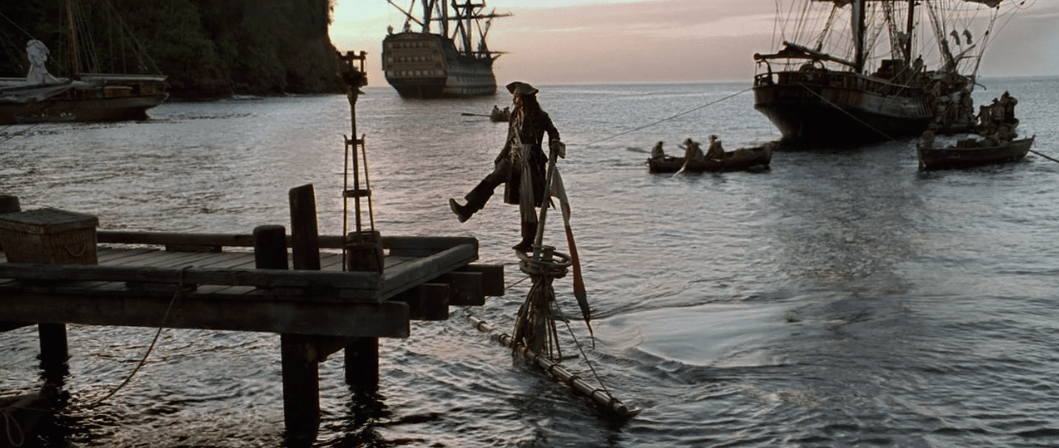 Alright! Here we are again with another franchise! Unlike the first franchise I covered with Indiana Jones, I think this one has a bit more down moments than up moments since I consider this franchise to only have one objectively good film with the others just kinda there. Luckily though, we get to start this analysis with my favorite of the films in the franchise: Pirates of the Caribbean: The Curse of the Black Pearl. This is the movie that really started getting people thinking Disney films based off of their rides could be something really creative and interesting. While not the first Disney film to attempt to make a Disney ride into a film (that honor is reserved for The Country Bears), it is certainly the one that most people enjoy, me included. I also won’t be the first person to say that this was a pretty creatively bankrupt point in Disney’s existence since their hand-drawn classics were starting to stagnate and live-action films were starting to be seen as more mature and enticing to audiences at the time. However, since Disney was desperate to churn out those hits and bring in the big bucks like they were used to, they decided to take another risk on a film based on one of their most popular rides this time: Pirates of the Caribbean.