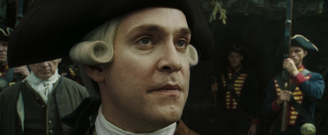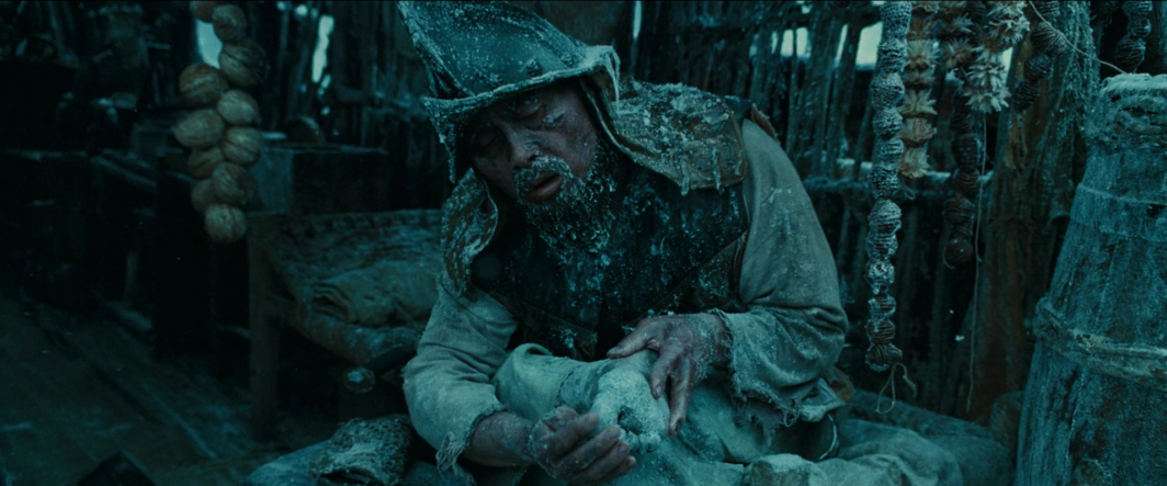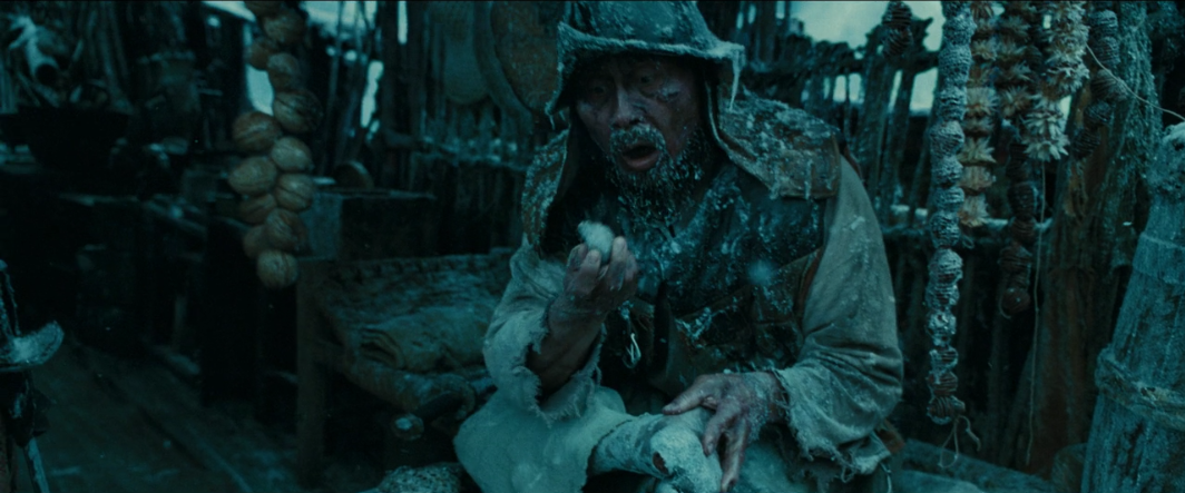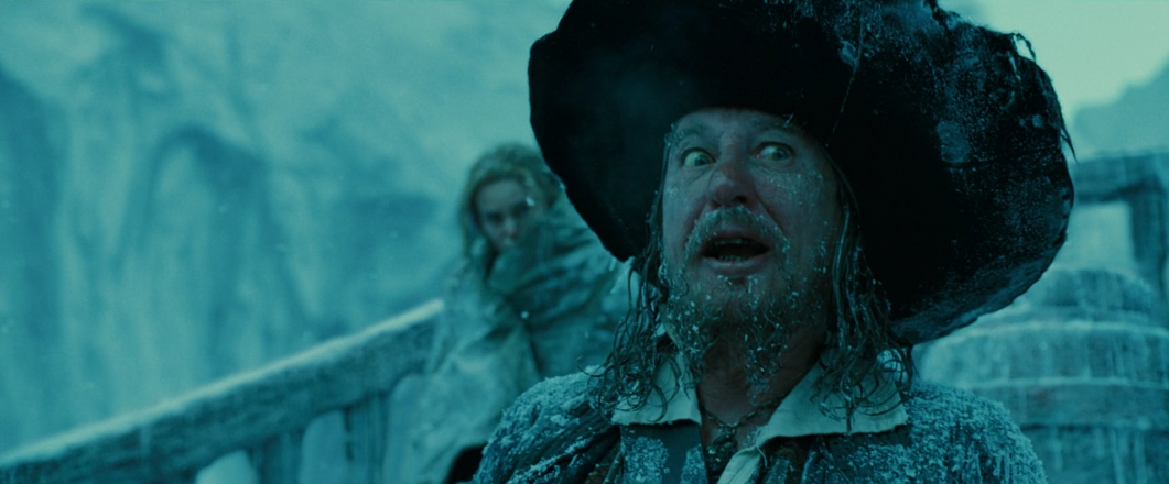 We have a brief moment of the Flying Dutchman destroying random ships to an overly dramatic version of Davy Jones’ theme. You know, it’s hard to get invested in these kinds of moments when we have no connection to what’s going on! Then we have another scene with Beckett, Mercer (played again by David Schofield), and Norrington (played a third time by Jack Davenport) but who cares? Back with the characters we care about, we find out they’re really cold. Fantastic. Also, what does it say about your movie when the best part is this: