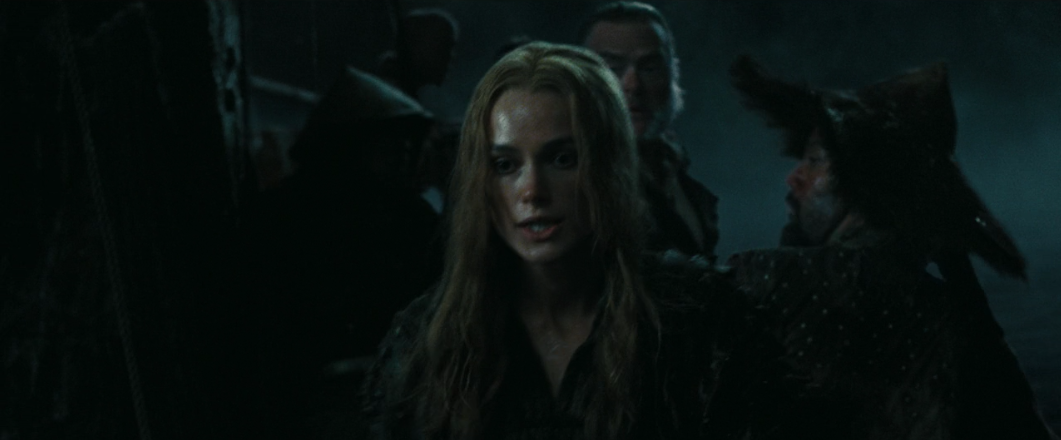 Speaking of strength, this movie already takes an odd turn with Elizabeth’s character (played for the third time by Keira Knightley). Before she wasn’t anything especially outstanding as far as self-defense was concerned. She had her quick wits and negotiating skills to get her out of tight spots in the first film and it wasn’t until the second film that she learned to sword fight from Will in-between movies, but now they act like she’s always been this Lara Croft / Elektra / Catwoman character out of literally nowhere.