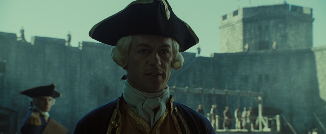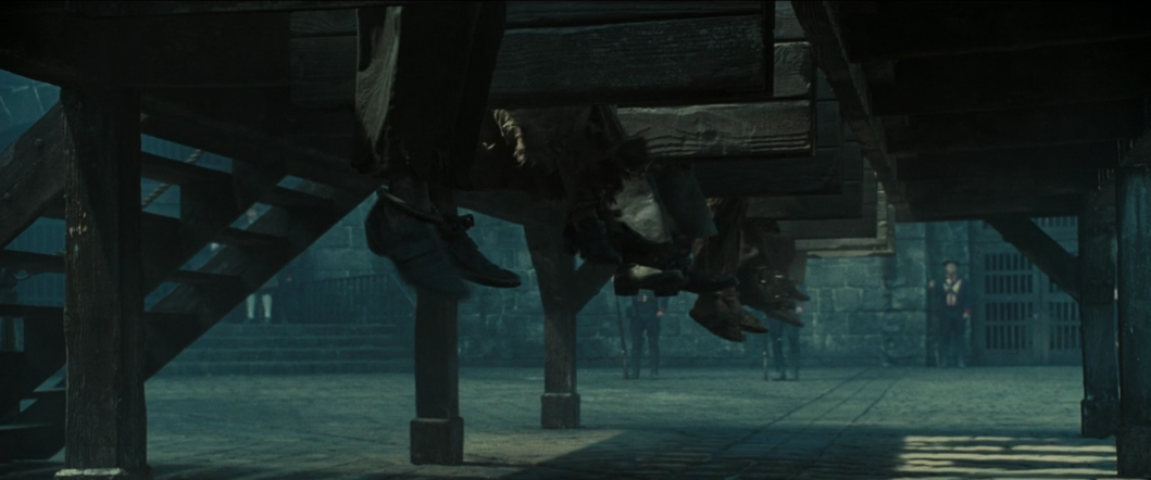 This is the first shot! Rewatching this movie after so many years I completely forgot how tonally inconsistent this film is with the rest of the franchise. Yeah, so apparently Lord Cutler Beckett (played again by Tom Hollander) has taken it upon himself to hang any person convicted of piracy, any person assisting a person convicted of piracy, and any person associated with a person convicted of piracy. When I say “any person” I mean any person.
