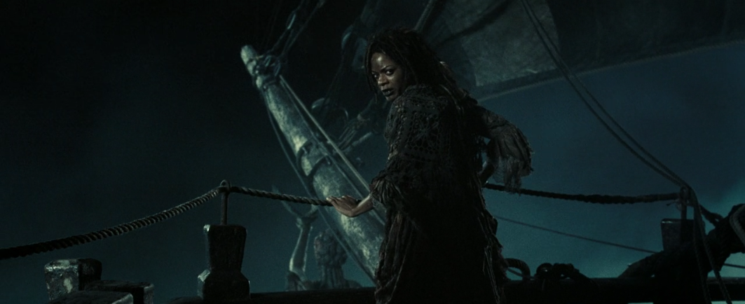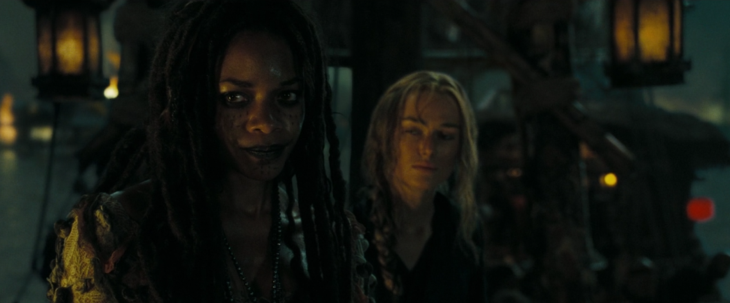Yeah, she seems so much more serious and uptight than she was in the last movie. If I’m being honest, after watching Dead Man’s Chest I had hopes that if there were any characters that could help save this movie’s material it would be Barbossa, Jack, Davy Jones, and her. If you remember from the last movie, Tia had a pretty strong opening with a lot of personality. She was smiling evilly at Jack walking into her hut, flirted with Will, seemed to have an interest in the occult and macabre, and generally had an air of fun about her.