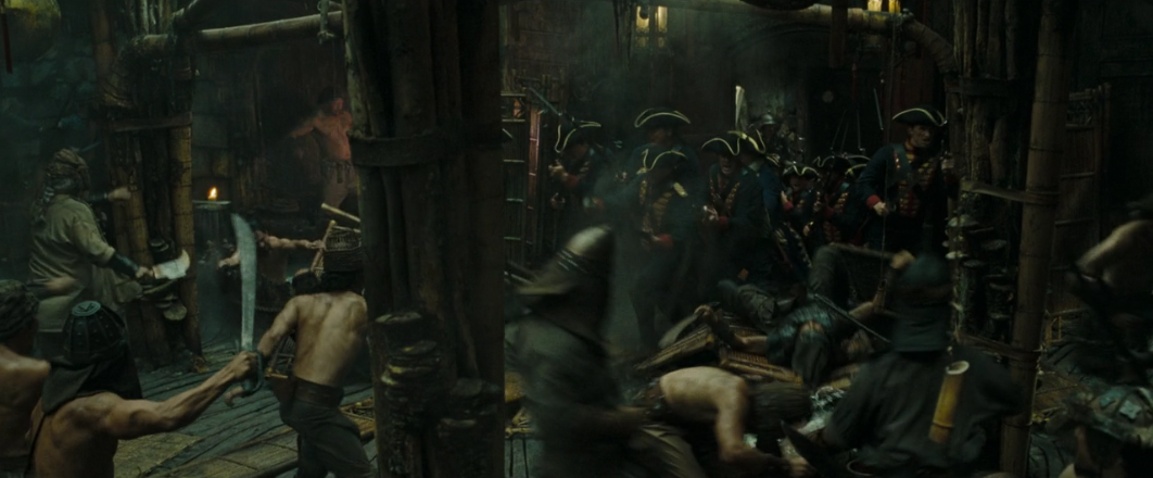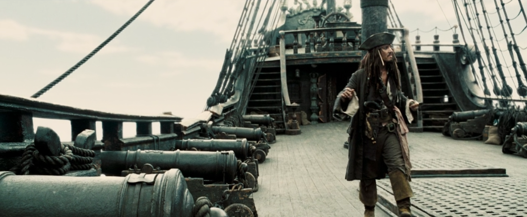 Sure other films have heightened and fast-paced action like in Lord of the Rings: The Two Towers, but the shots also allow you to absorb what’s happening in real time and hold long enough on the action to make you feel as if you’re really there experiencing it yourself. Not only are our leads in this film able to take out expendable pirates with one sword slash or stab, but the camera hardly ever holds on anything for longer than a few seconds before cutting away to something else.