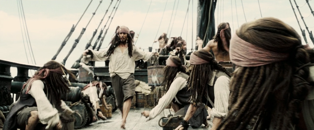 While that’s going on the rest of the pirates release Calypso onboard the Black Pearl in a pretty cool visual.