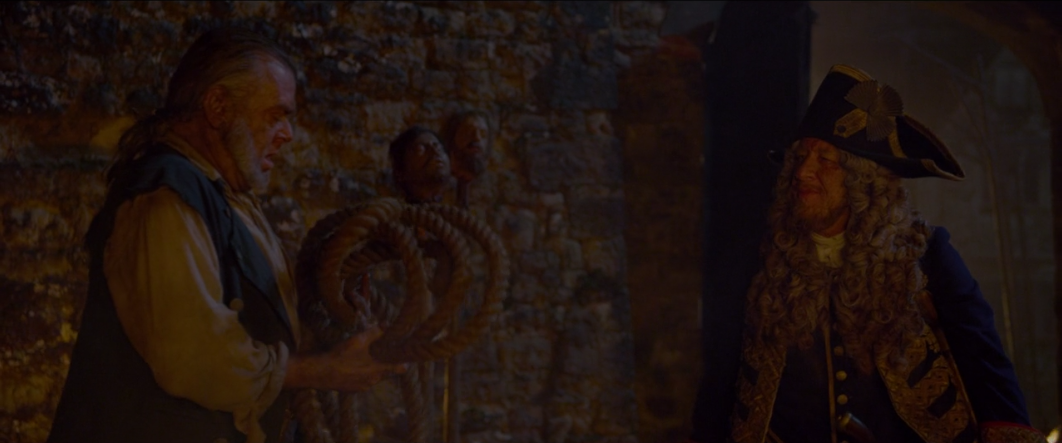 Despite their best efforts, Jack and Barbossa end up getting…ugh…captured. Here we also see that Barbossa’s peg leg has another use.