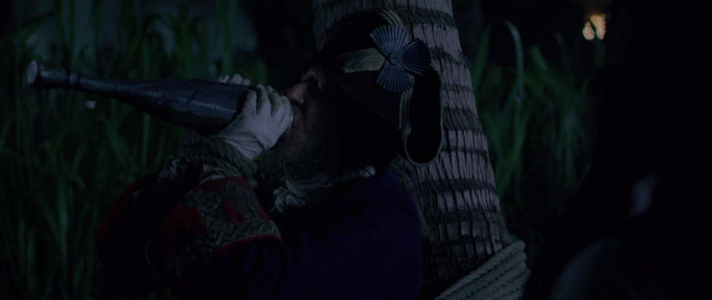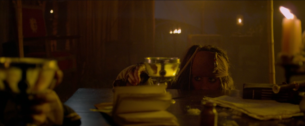 Then for this one it’s surprisingly intriguing the way he describes how he lost the Pearl and his leg to Blackbeard. Personally I would’ve preferred something more like some visuals to accompany his exposition that would draw us in even more, but just based on Rush’s acting I felt invested for a moment in a movie that has practically 0 investment.