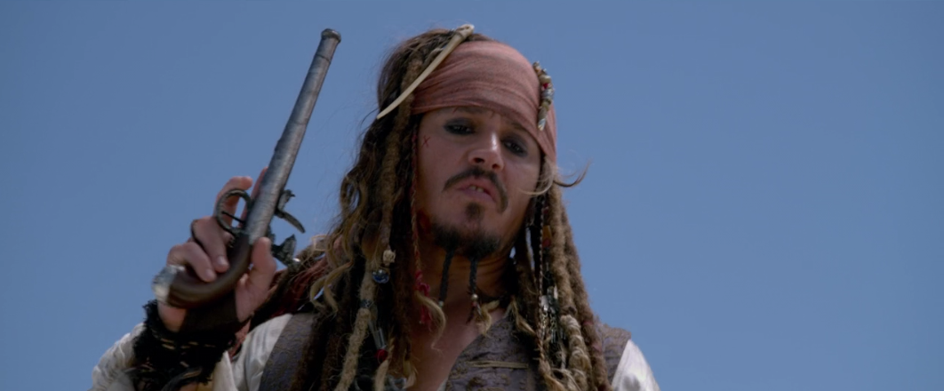 This makes way for even more pedantic writing where they eventually make their way to a cliff with a river below and for some reason one of them has to jump into the river. It’s not explained why, but I’ll count my blessings because no explanation is better than an explanation in these movies. What they do to decide who jumps (instead of Blackbeard doing the simple thing of threatening to shoot Angelica if Jack doesn’t jump) is grab 6 pistols, remove the shots from all but 2, and have Jack pick pistols to shoot at Angelica.