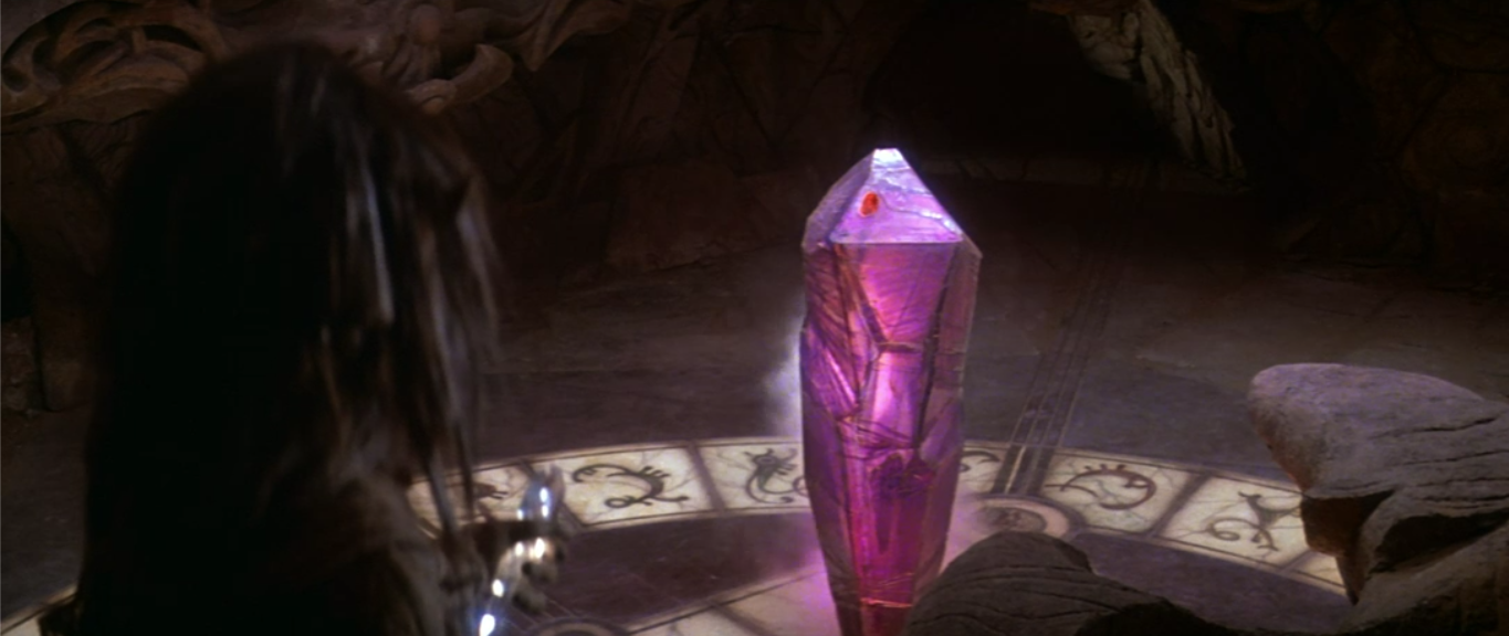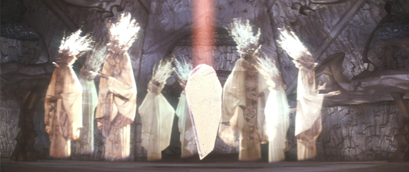 Since Aughra’s less than helpful, Jen has to figure out which one it is. He eventually gets the idea to play a tone on his pipe to see if any of the shards react to it. This is actually a clever callback to when the Mystics were chanting a similar tone to call Jen earlier in the movie, and eventually this results in the true crystal shard being identified.