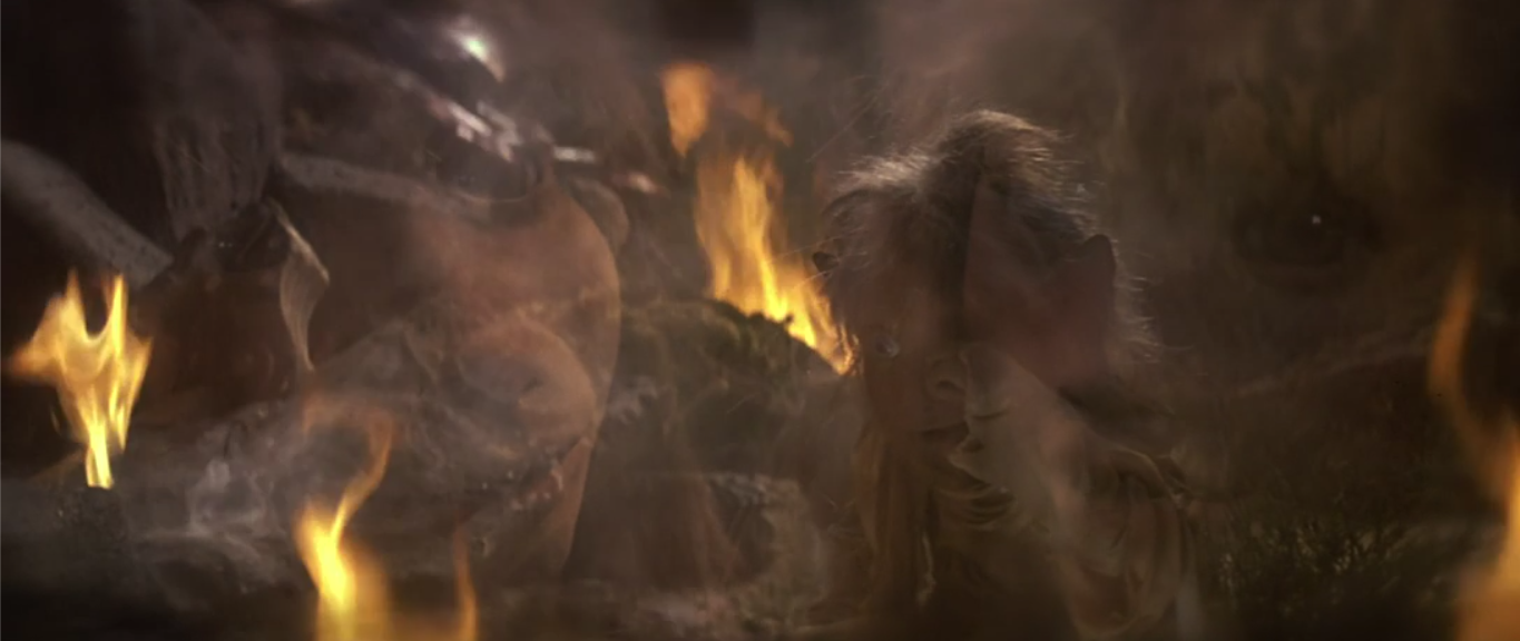 Since Jen is still stuck in the mud and starting to sink, Kira reveals she has the power to talk to animals and manages to get an underwater creature to lift Jen out of the bog. Trust me, this will be a helpful tactic later in the movie. Kira ends up leading Jen to the next scene, and I will say this transition is both messed up and pretty funny.