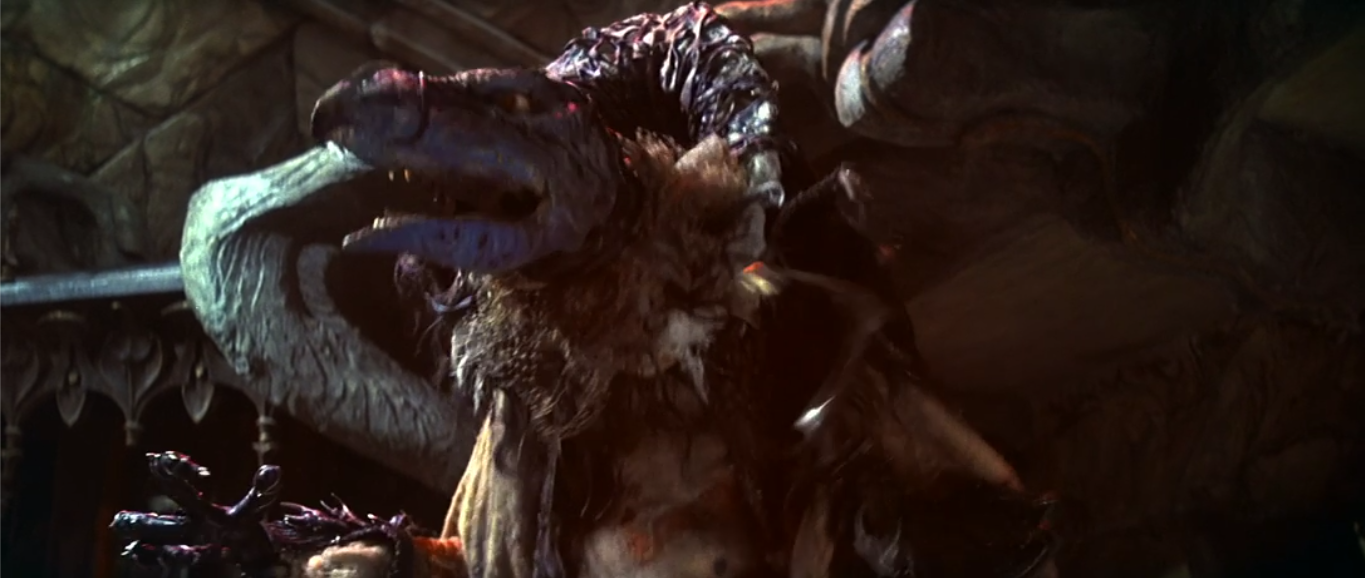 This is Fizzgig (performed by Dave Goelz and voiced by Percy Edwards) and I’ll give it to the filmmakers, some of these characters are really fun to watch. I know that the animal sidekick trope is also one that’s been done so many times it’s not even funny, but I think I like this one for how much it represents the core of the film to me. At his heart Fizzgig is pretty adorable, yet he also has a kinda creepy design that reflects the tone of the film as well. In a way it kinda reminds me of Zero from The Nightmare Before Christmas where he adds a much needed levity to the film, but doesn’t stray too far from its dark roots.