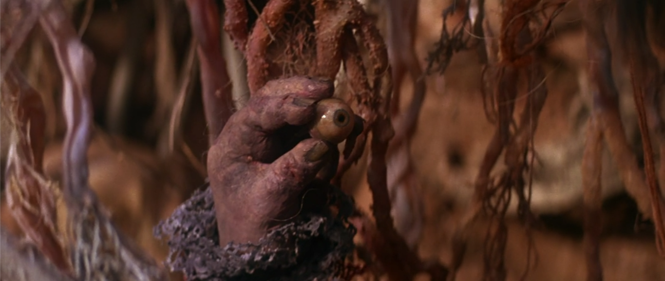 Anyway, after making their way inside, Chamberlain confronts them again only for Jen to cut his hand with the crystal shard. This is where the connection between the Skeksis and the Mystics becomes especially interesting to me, because as soon as we see the blood ooze out of Chamberlain’s wound, we get another shot of a Mystic as well.