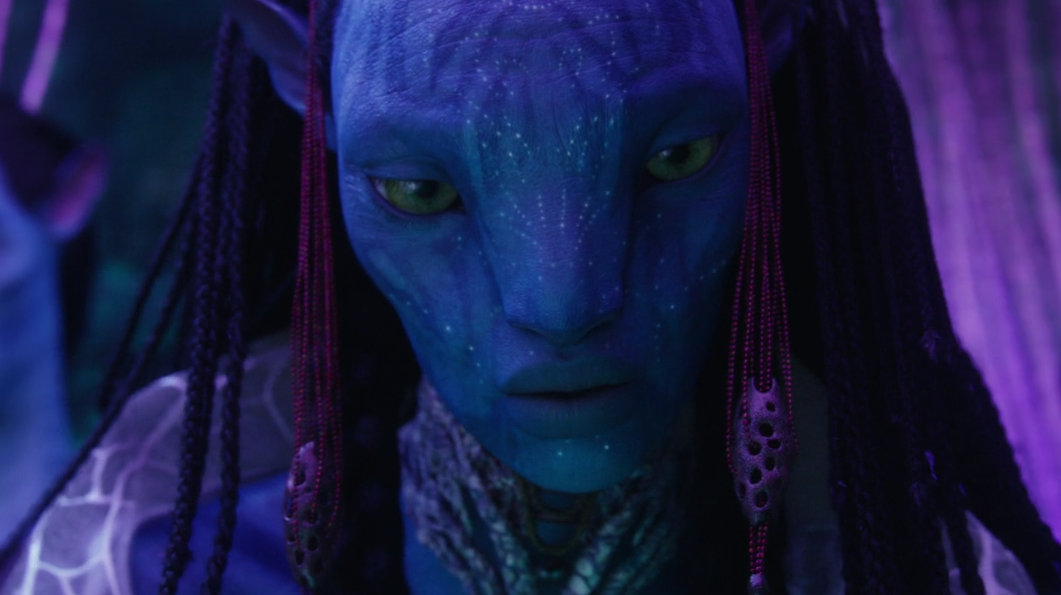Jake follows Neytiri to her village but gets captured by Tsu’tey (played by Laz Alonso) and brought before the chief, Eytukan (played by Wes Studi), who’s also Neytiri’s father. Because why wouldn’t Neytiri just be a random villager, of course she’s the chief’s daughter. Neytiri’s mother, Mo’at (played by Carol Christine Hilaria Pounder), decides that Neytiri needs to teach Jake their ways to –