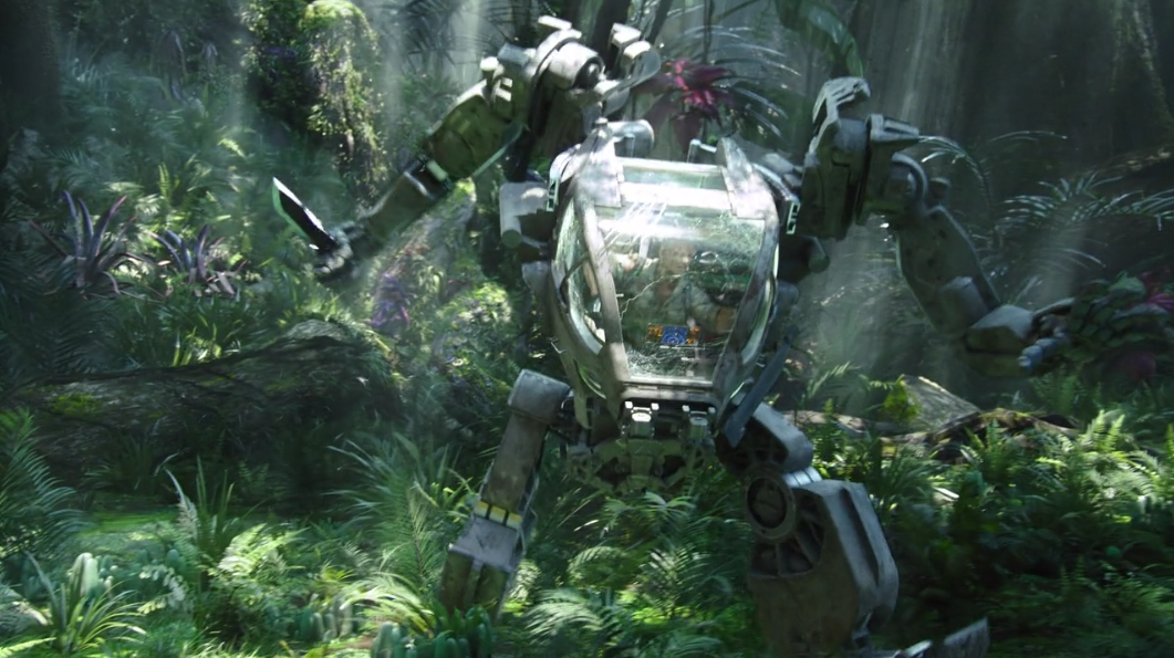 Another thing you’ll notice is that the world-building is very shaky. When they touch down on the planet, they show off these mechs the humans use which really just makes anyone driving it bigger. They even have the mechs carry giant guns and giant knives with their machine arms. Is it that hard to come up with a cool robot?