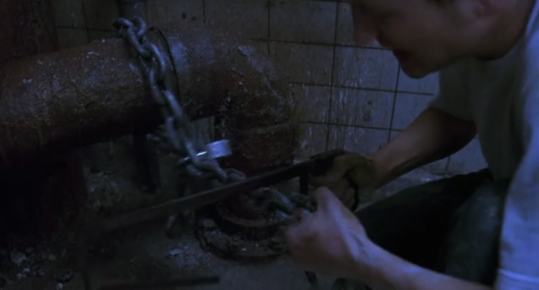 John tells Adam that the key to his chains is in the bathtub. The same bathtub he woke up in at the beginning of the movie. The same key that went down the drain. Bummer. Honestly though, how was Adam supposed to get that key? Was he seriously supposed to wake up, underwater, know the key is there, and grab it before the water goes down the drain? That’s pretty dumb.