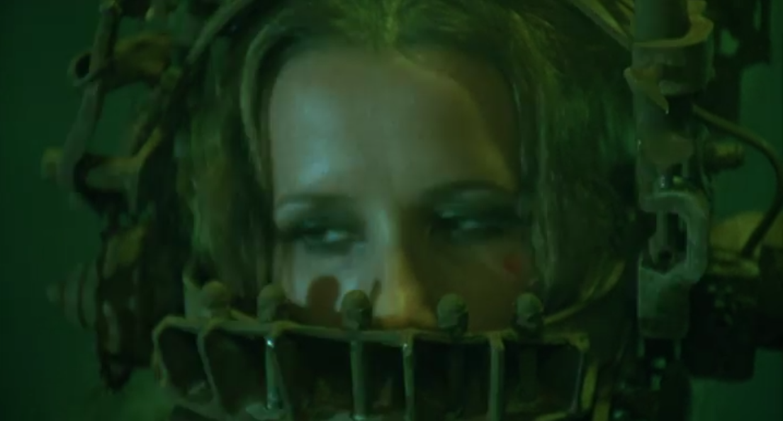 and of course, the creatively named “Reverse Bear Trap” that’s currently adorning Amanda’s head. Through pure grit and strength of will, Amanda manages to overcome the game by getting the key to the Reverse Bear Trap that’s hidden in her cell mate’s stomach and using it to remove the trap from her head a split second before it went off. Good for her.