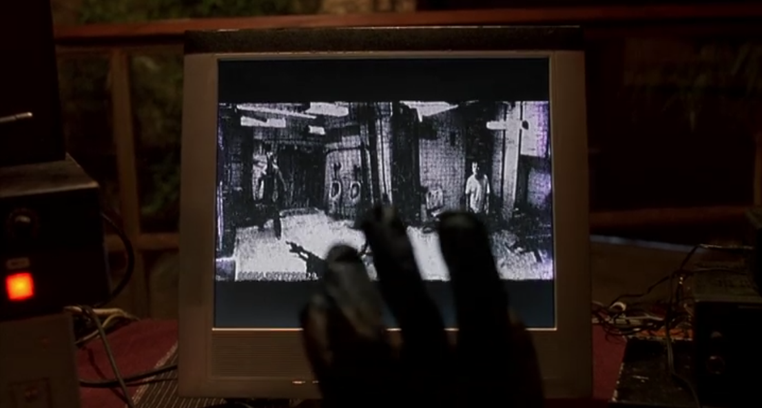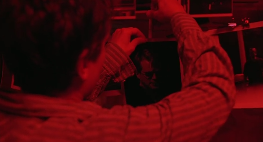 Back in the present present, Adam makes the discovery that the glass he broke is a two-way mirror. After further breaking it, they find out that behind the mirror is a camera watching everything they do. The person watching that camera footage seems to be having fun.