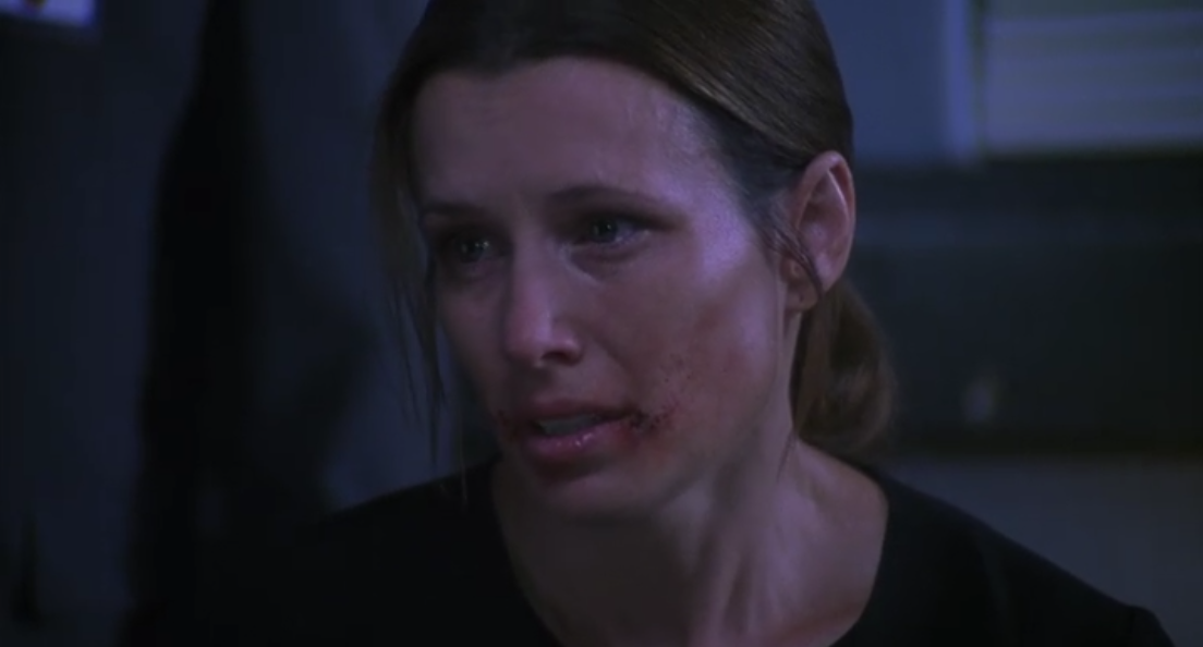 For some reason Tapp and Sing also invite in one of Jigsaw’s surviving victims named Amanda (played by Shawnee Smith) to tell her story to Lawrence. It’s unclear why they do this, but it gives us one of the most iconic sequences in modern horror cinema so I’m not complaining.
