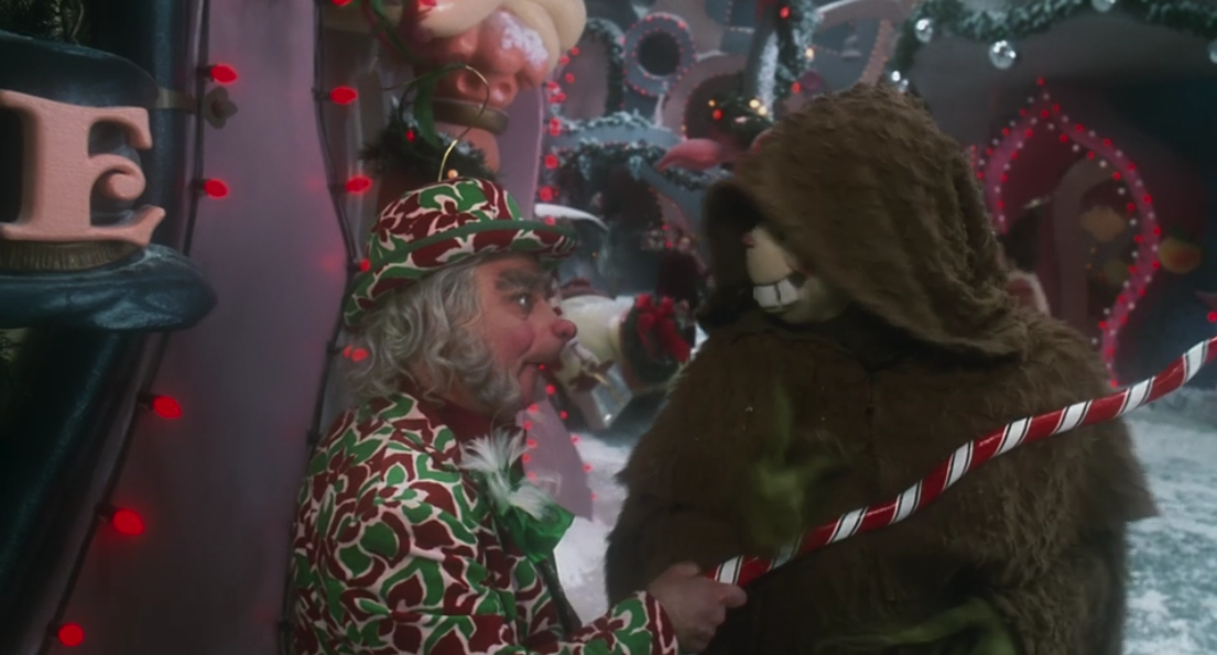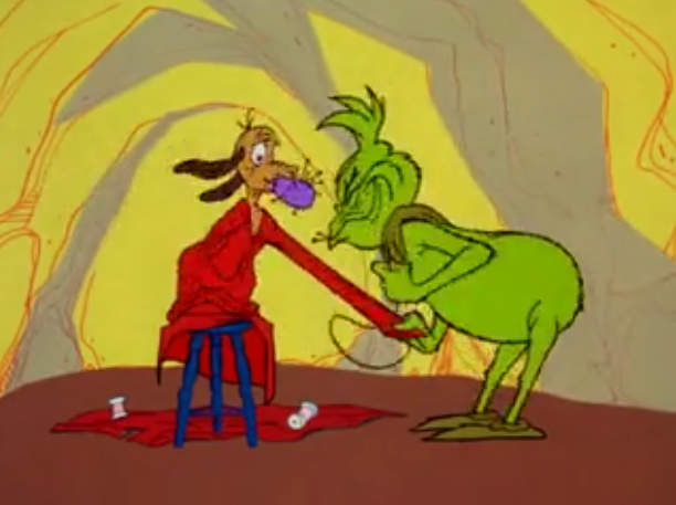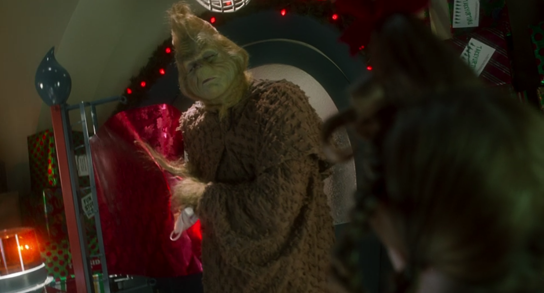 Some aspects of his character are still there, but they’re exaggerated for the sake of ear-splitting screeching and physical comedy. A great example of the character disconnect is what he says immediately after the close-up above. Tell me if this is something the Grinch should be saying:
