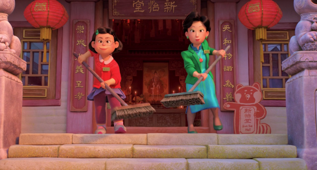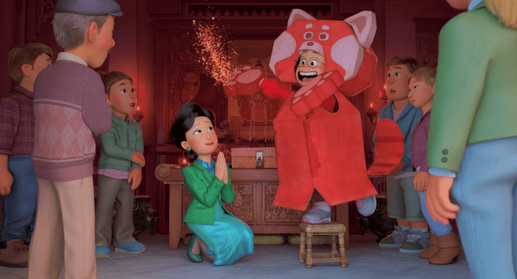 As soon as this secret about their family is revealed, it’s framed as a “bad thing.” I also enjoy the history around the red panda spirit being passed down in their family. It’s great contrast because what was intended as positive in one generation can become negative in the next. In one little story, it creates several layers of complexity for the film going forward.