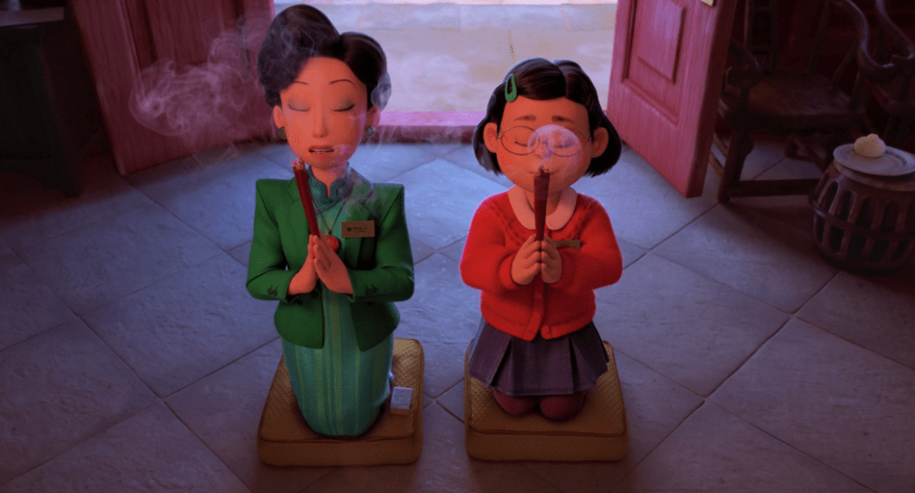 After this bit of fun, the movie gets more serious. It’s here that we also realize that the panda, in a way, has been a symbol of generational trauma. Because when they restart the ritual, this is how Mei finds her mom: