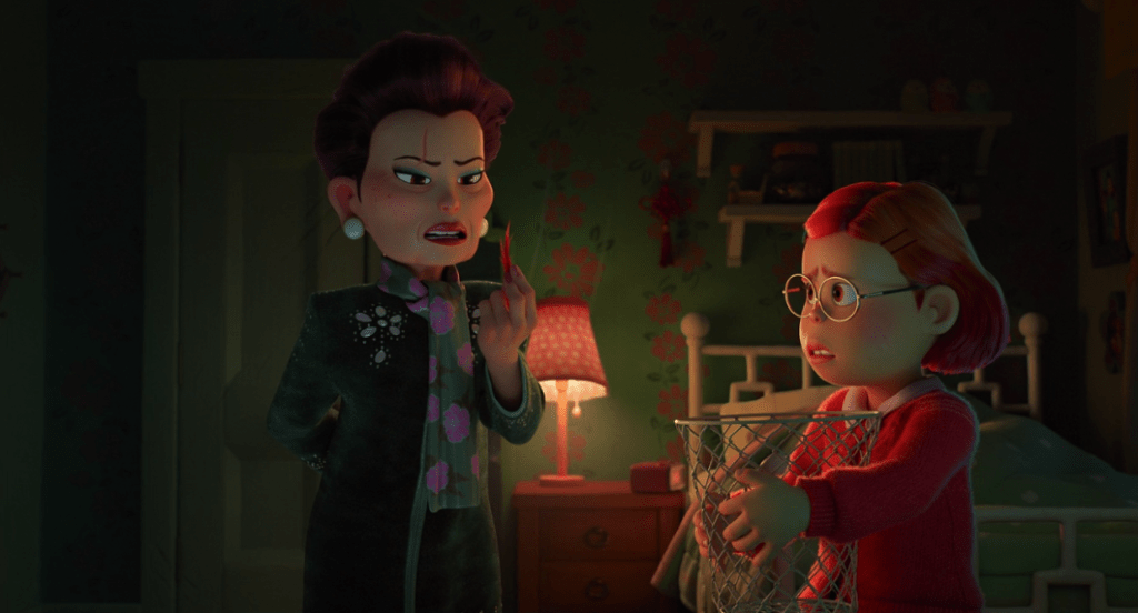 Even though the family understands the original intention behind the red panda, they talk about it very negatively. When Mei’s family comes to visit, her grandmother (voiced by Wai Ching Ho) all but confirms its beastly nature.