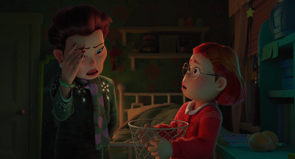 Turning Red luckily doesn’t fall into that category. In fact, I think there’s a lot of heart put into it. For example, when Ming learns of Mei’s first transformation, she does everything in her power to repress it.