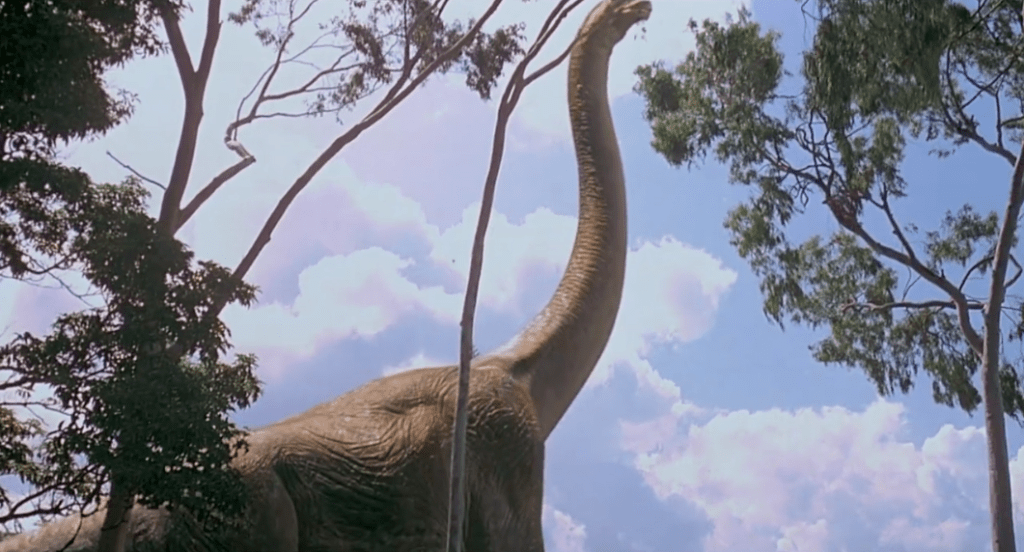 I kid you not. You can blame this entire movie on a Snickers wrapper. What happens is, one of the techs goes about their routine of checking on the dinosaurs in their enclosure. Before they go in, they eat their pre-work pick-me-up of a Snickers bar. The wrapper is thrown on the floor allowing it to get sucked into the door closing mechanism. This is apparently enough to jeopardize the entire island’s security system which releases the dinos.