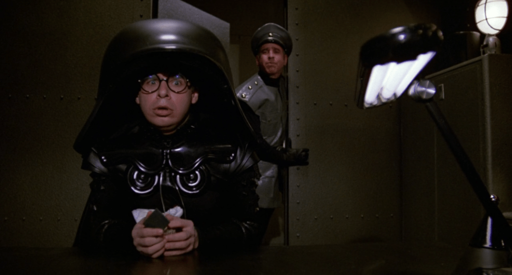 Since he’s been popping up, let’s go over our master of darkness: Dark Helmet (played by Rick Moranis).